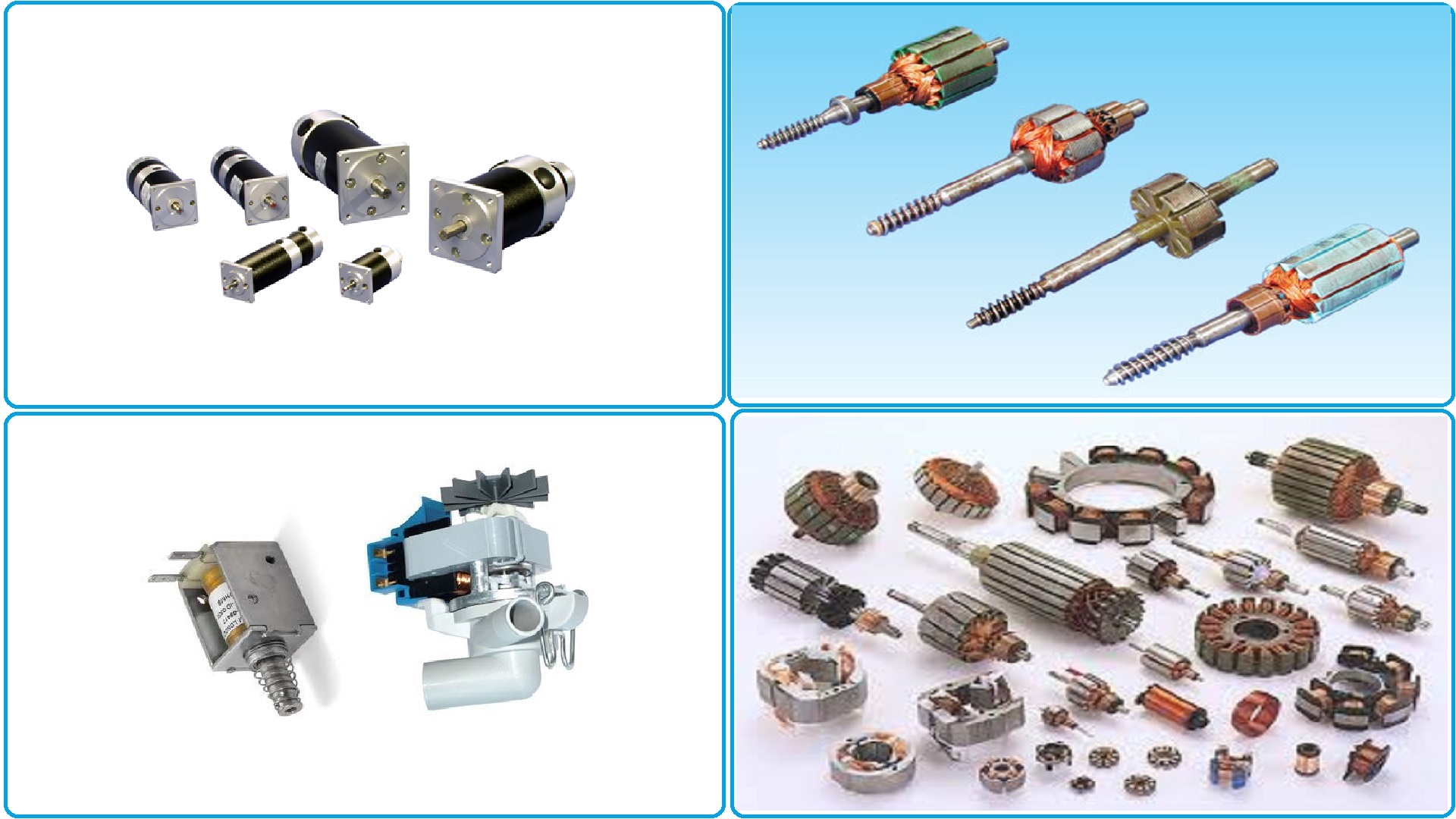 Rebobinăm o gamă variată de bobine tip selenoid pentru motoare de mici dimensiuni sau pentru acționări electromecanice ale electrovalvelor sau contactoarelor. Putem rebobina rotoare si statoare ale utilajelor industriale de curent continuu sau alternativ, care au in componenta bobinaje speciale de mici dimensiuni. In general, se va face o constatare prealabila, pentru a se putea evalua posibilitatea rebobinarii, apoi se va executa lucrarea respectiva. Bobinajele speciale de mici dimensiuni necesita rabdare, migala si o acuitate vizuala sporita.